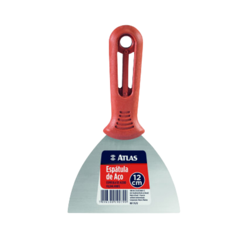 A Espátula de Aço 12 cm - Atlas é ideal para tarefas de acabamento em áreas maiores, como aplicação de reboco e outros revestimentos. Sua lâmina de 12 cm facilita a cobertura de grandes superfícies com eficiência e precisão.